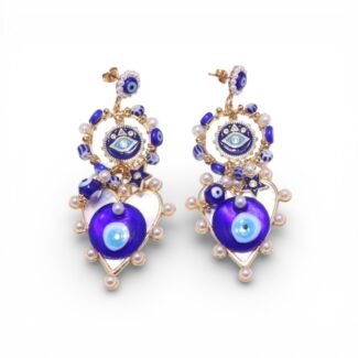 Boucles d’Oreilles Œil Bleu & Perles Dorées – Mykonos