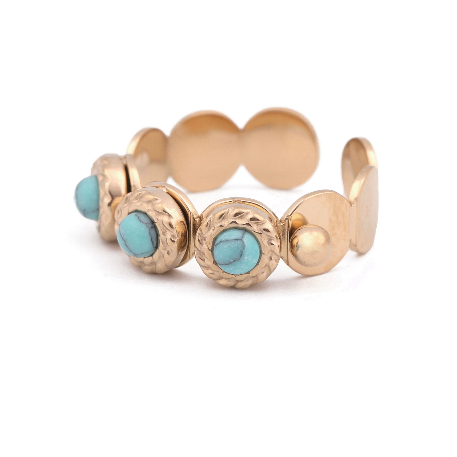 Bague avec monture ajustable, ornée de pierre semi précieuse.