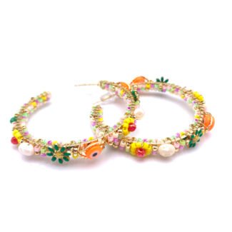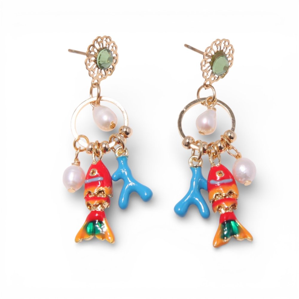 Boucles d’oreilles style marin avec coquillage, corail et charms dorés. Bijoux fantaisie tendance, disponibles en plusieurs couleurs.