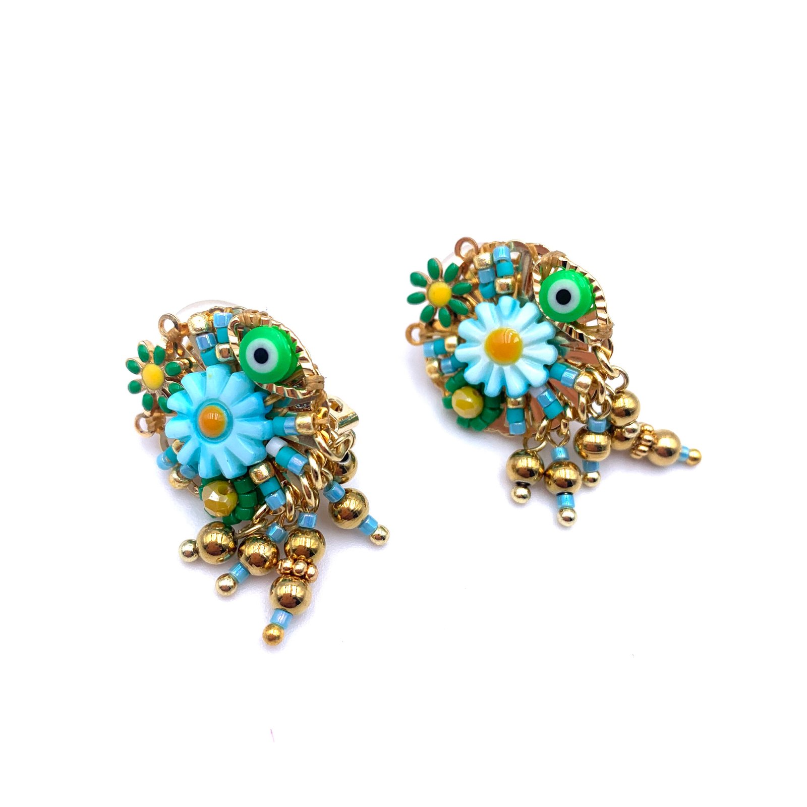 Boucles d’oreilles composées de perles de Miyuki multicolores, de fleurs et de perles Oeil protecteur