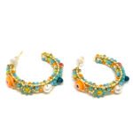Boucles d’oreilles créoles composées de perles de Miyuki multicolores, de fleurs et de perles Oeil protecteur