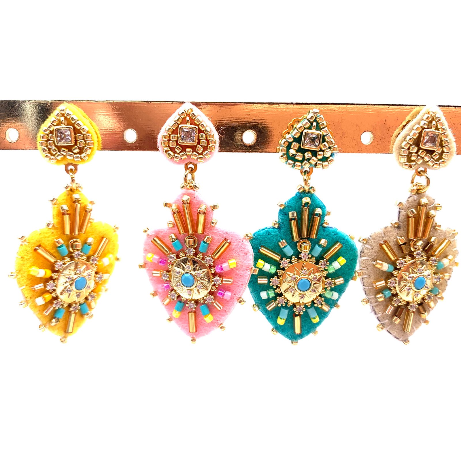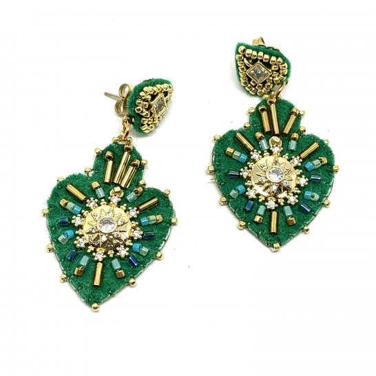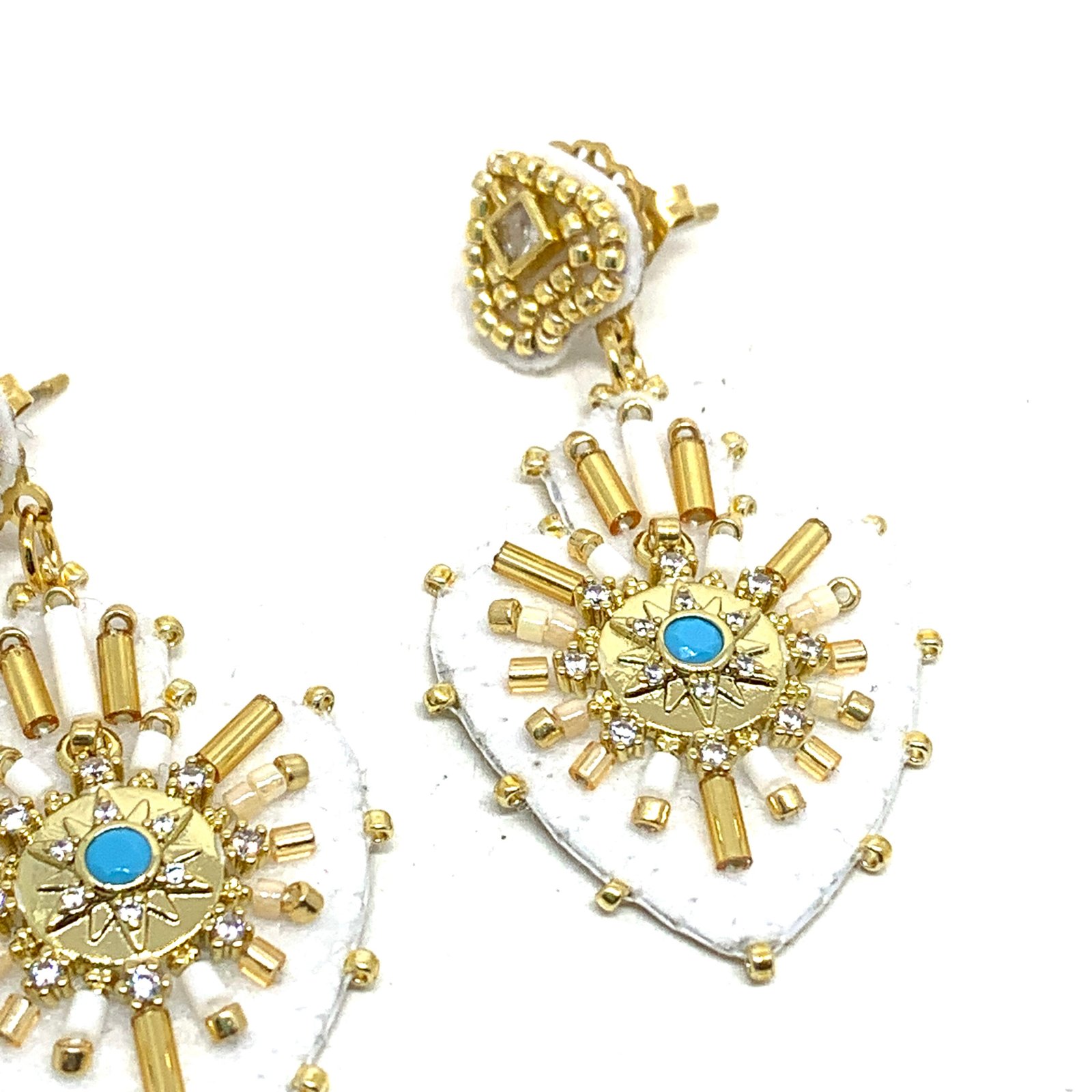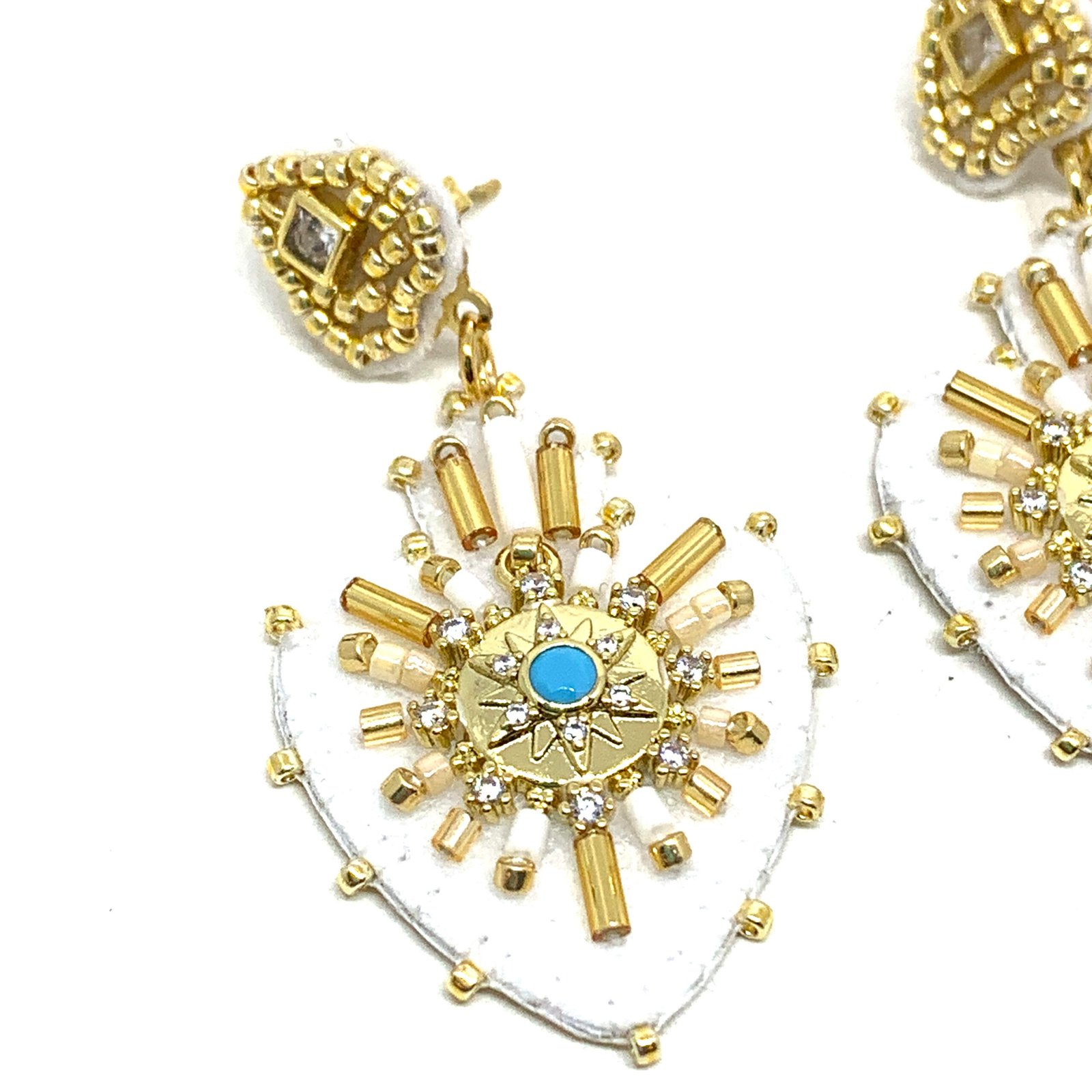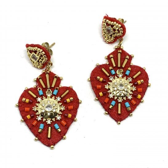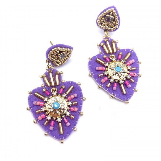 Boucles d’oreilles Croix en feutrine avec perles de Miyuki,perles dorées et strass central.