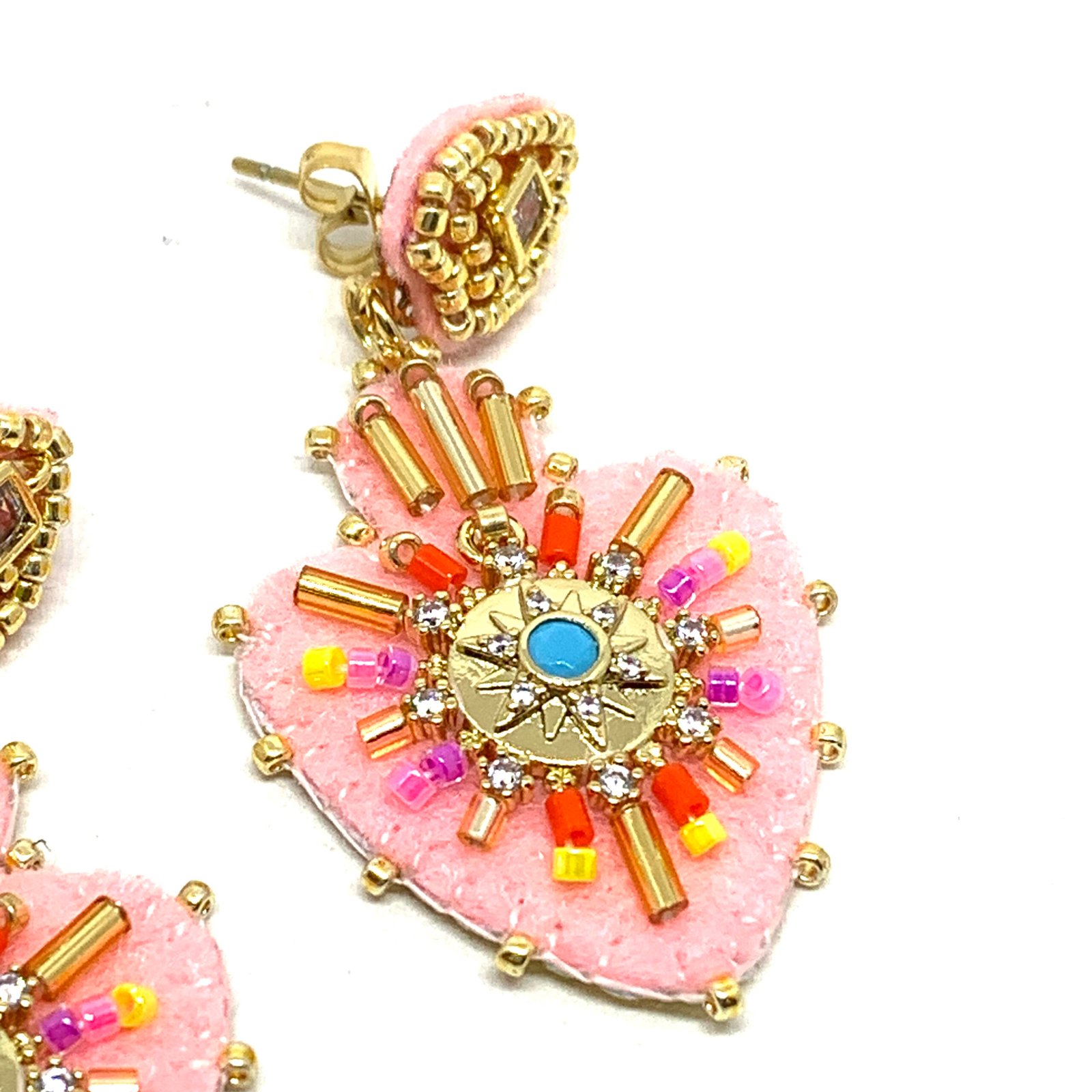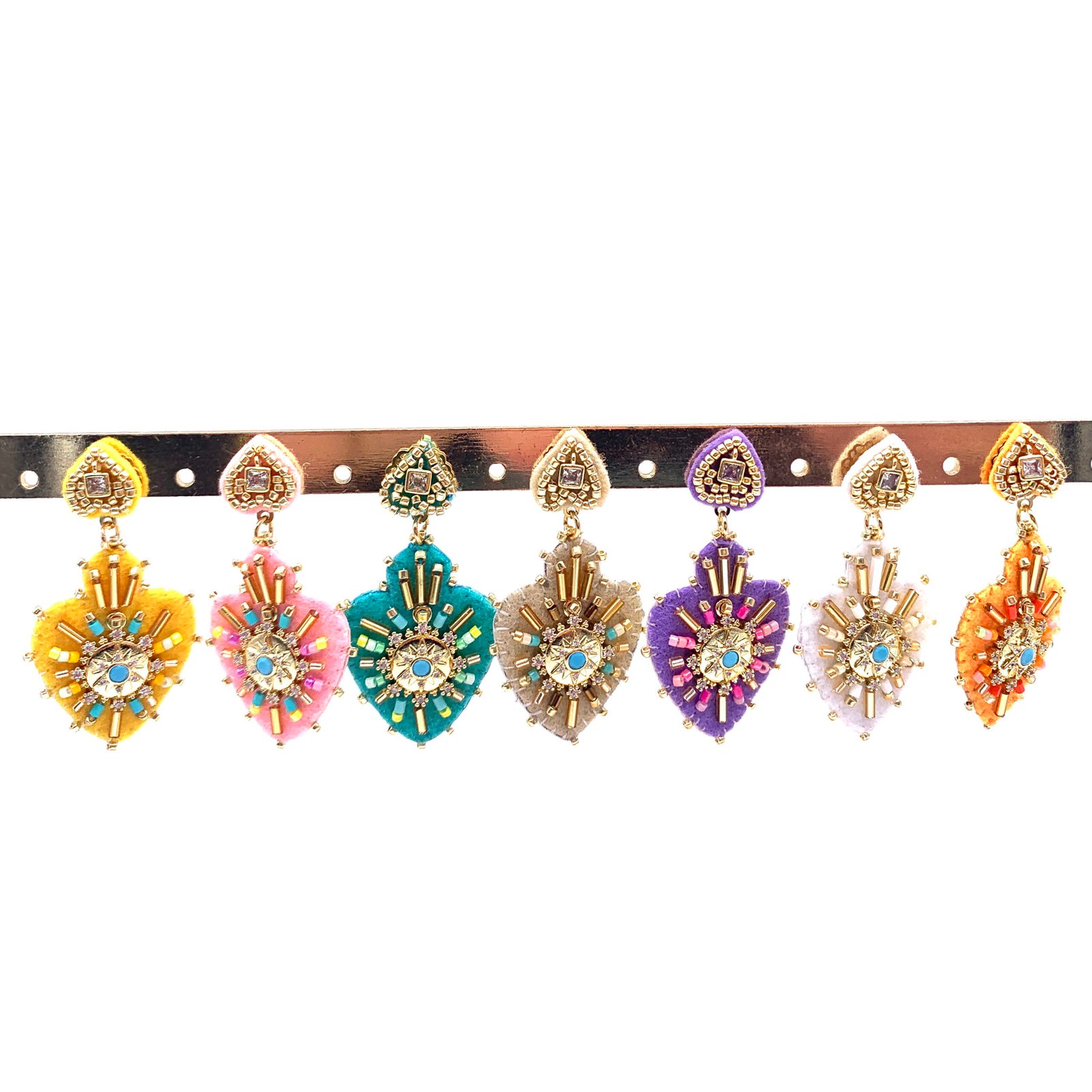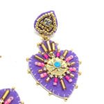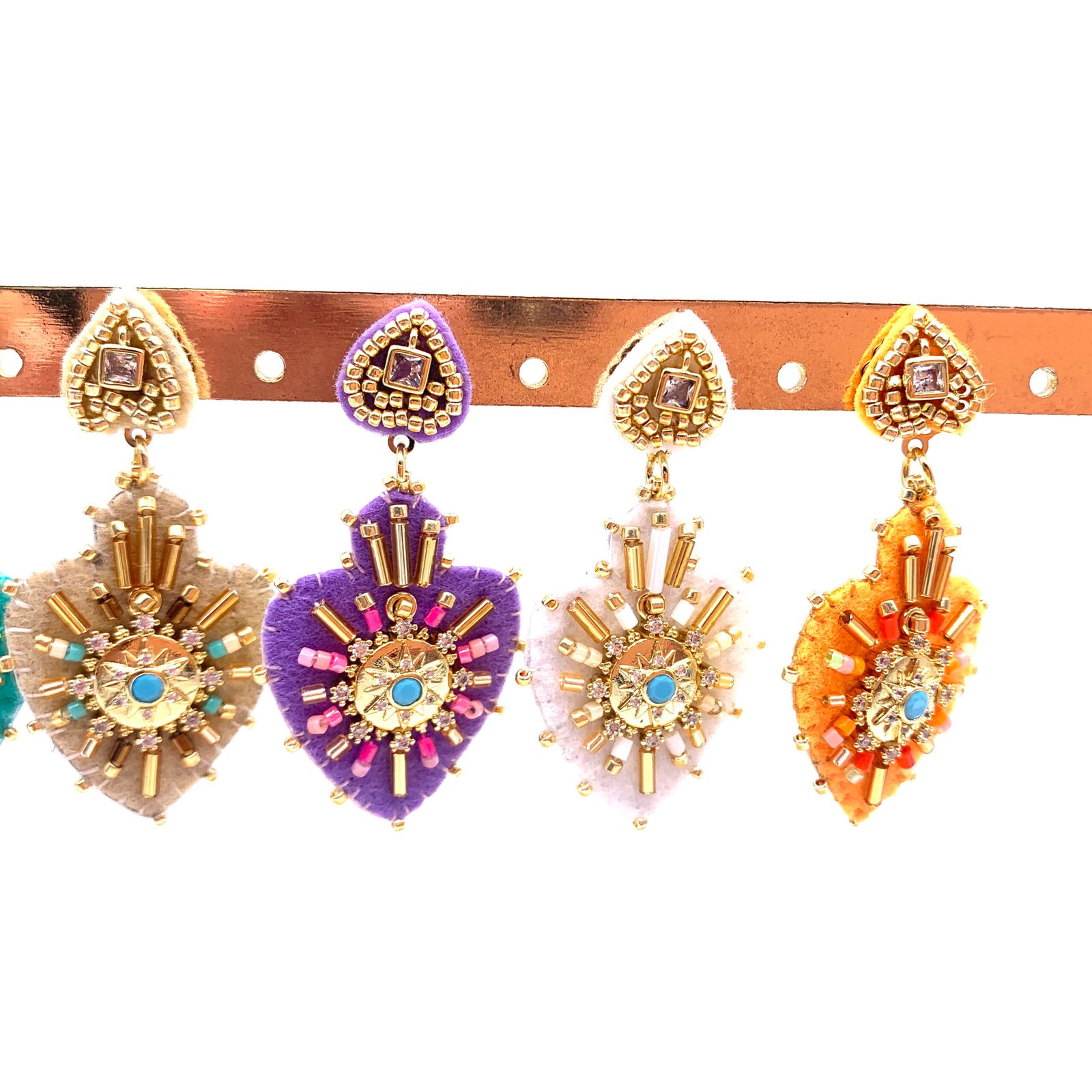 Boucles d’oreilles Croix en feutrine avec perles de Miyuki,perles dorées et strass central.