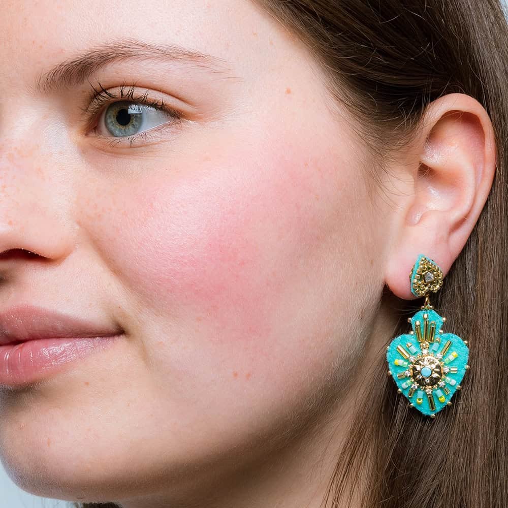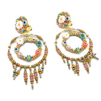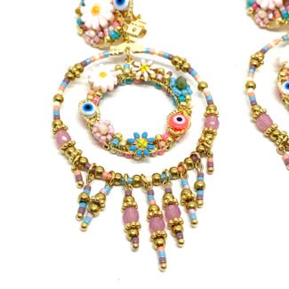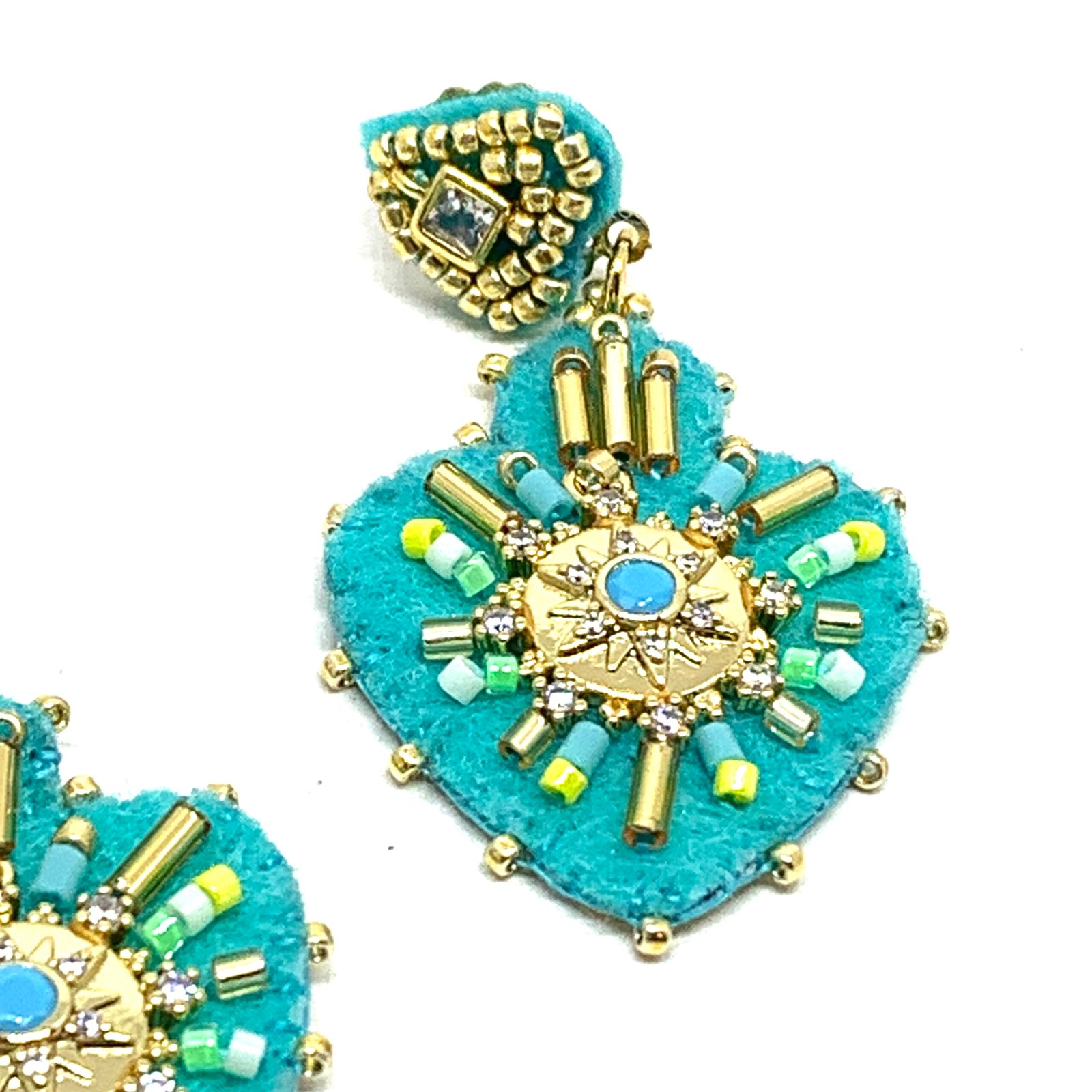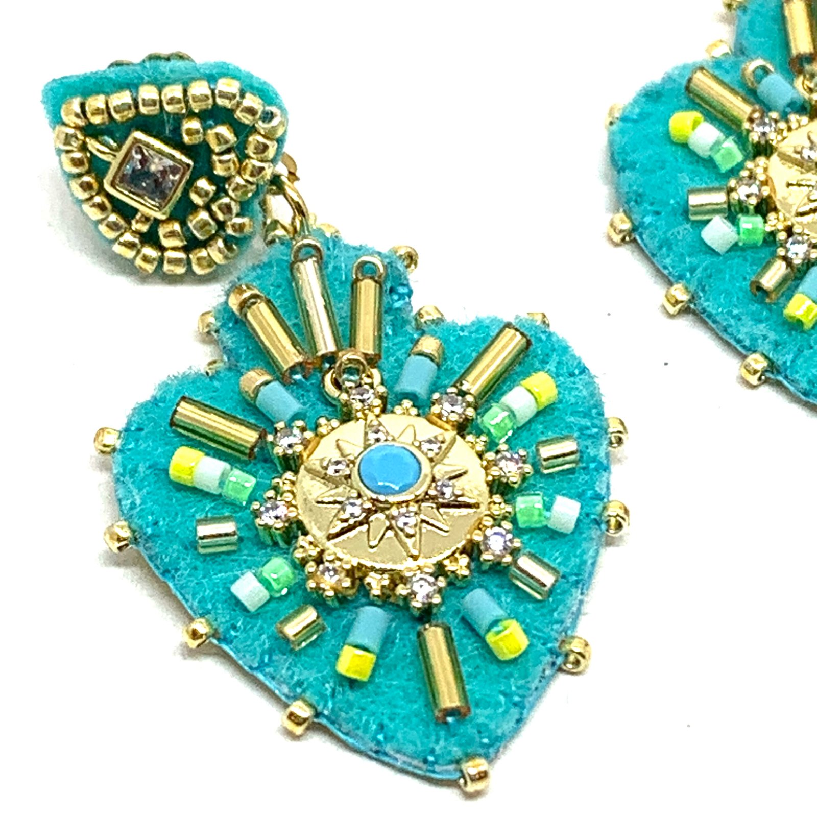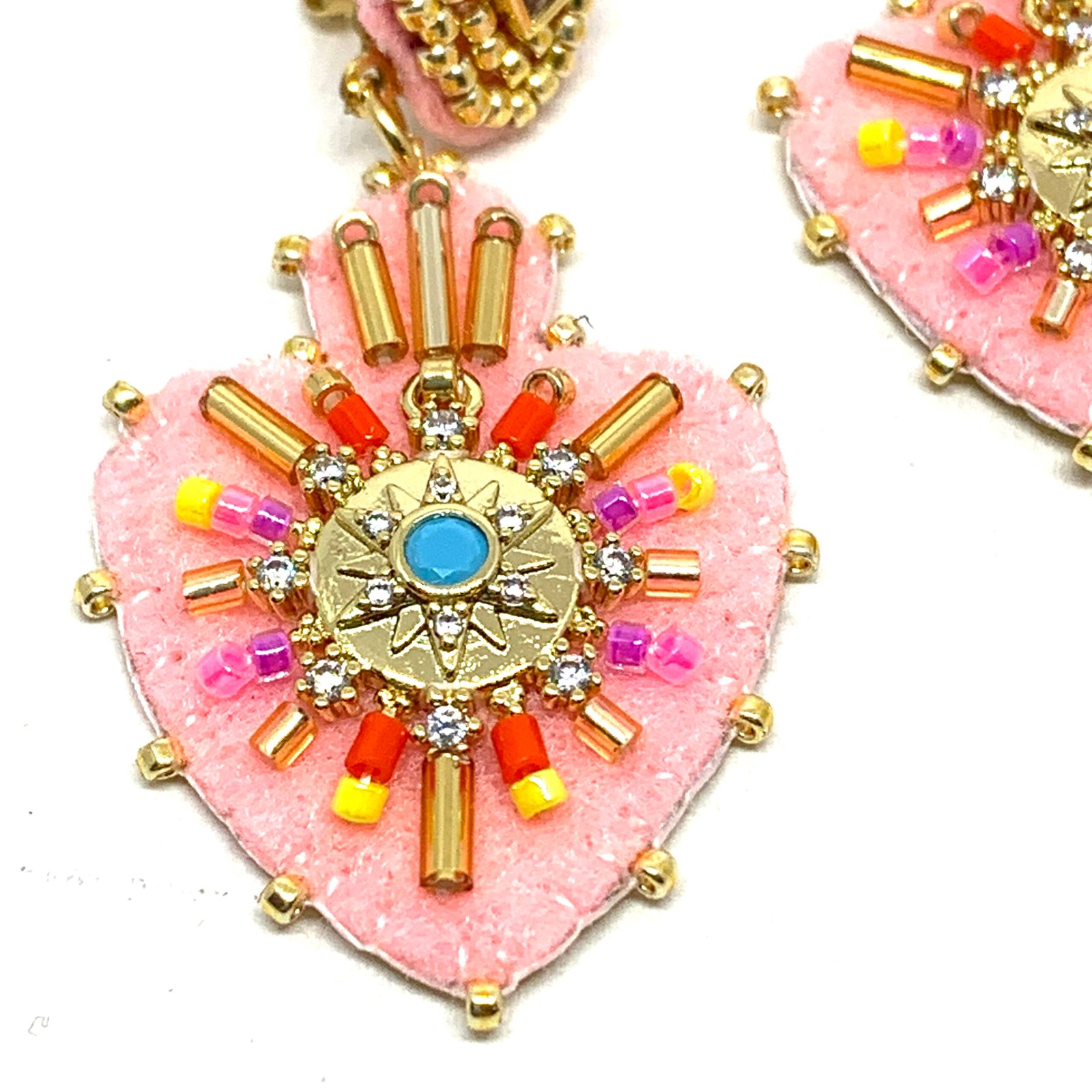 Boucles d’oreilles Croix en feutrine avec perles de Miyuki,perles dorées et strass central.