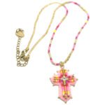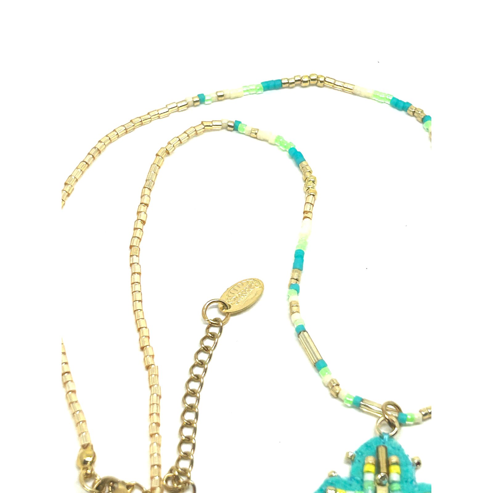 Collier avec lien en perle de Miyuki et pendentif en feutre serti de perles