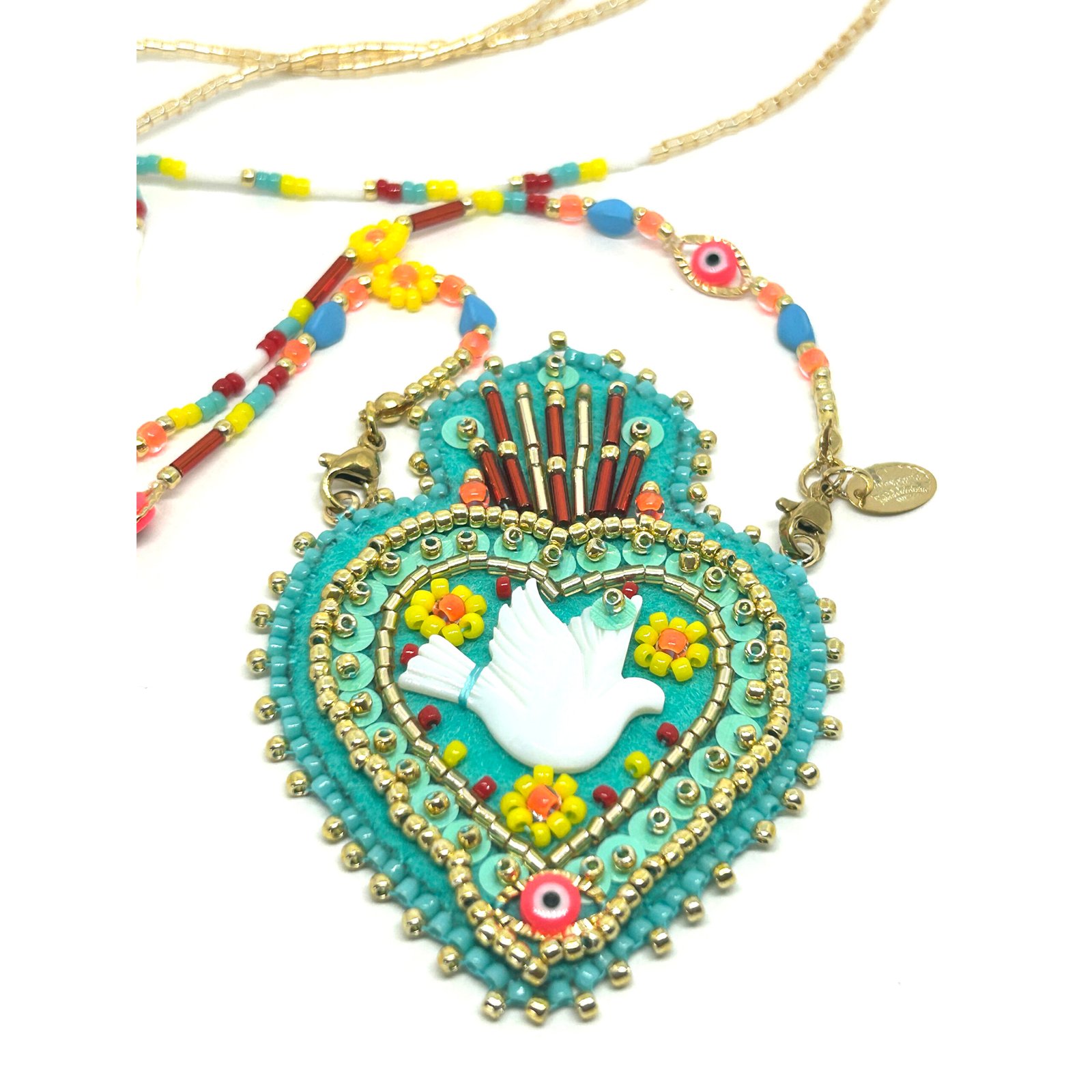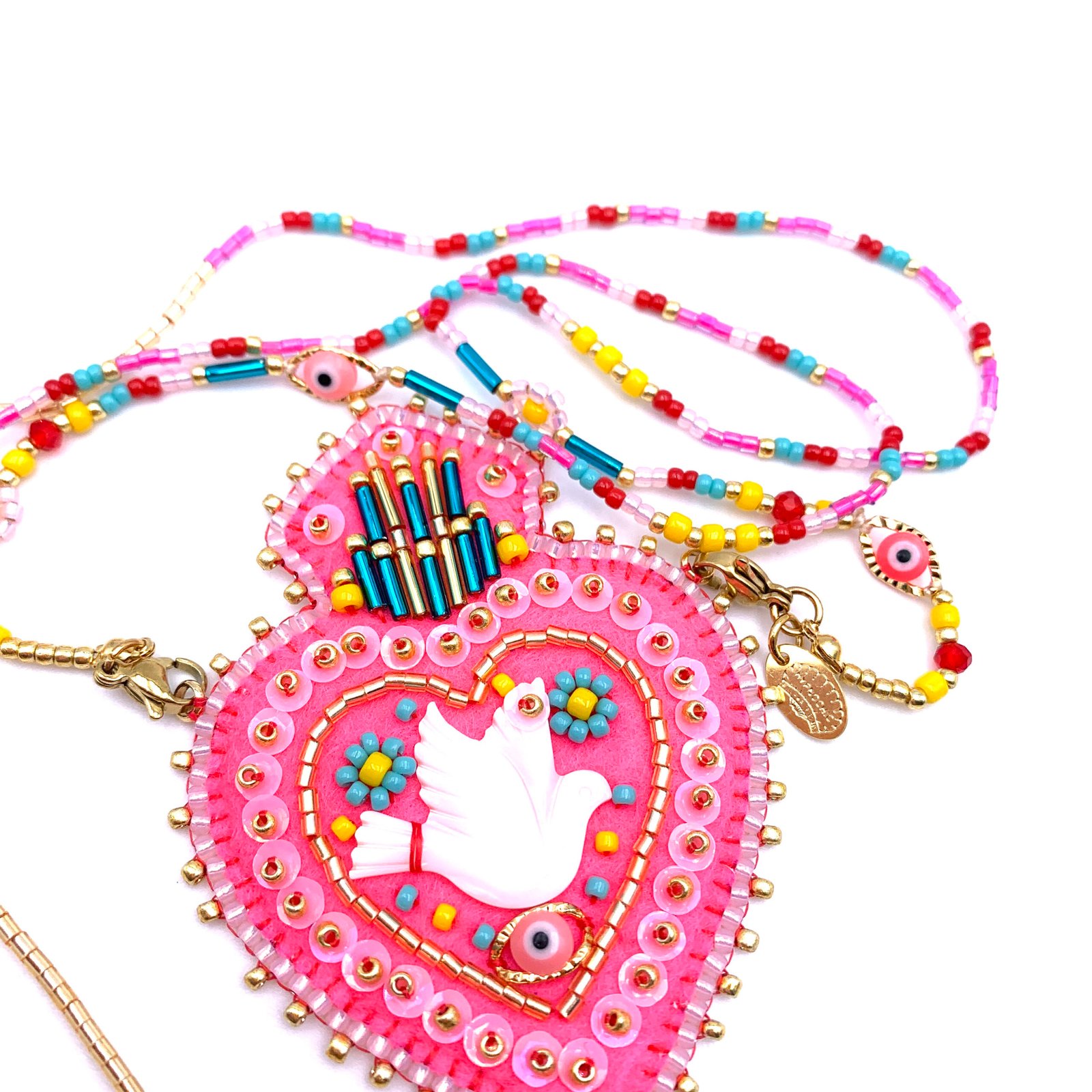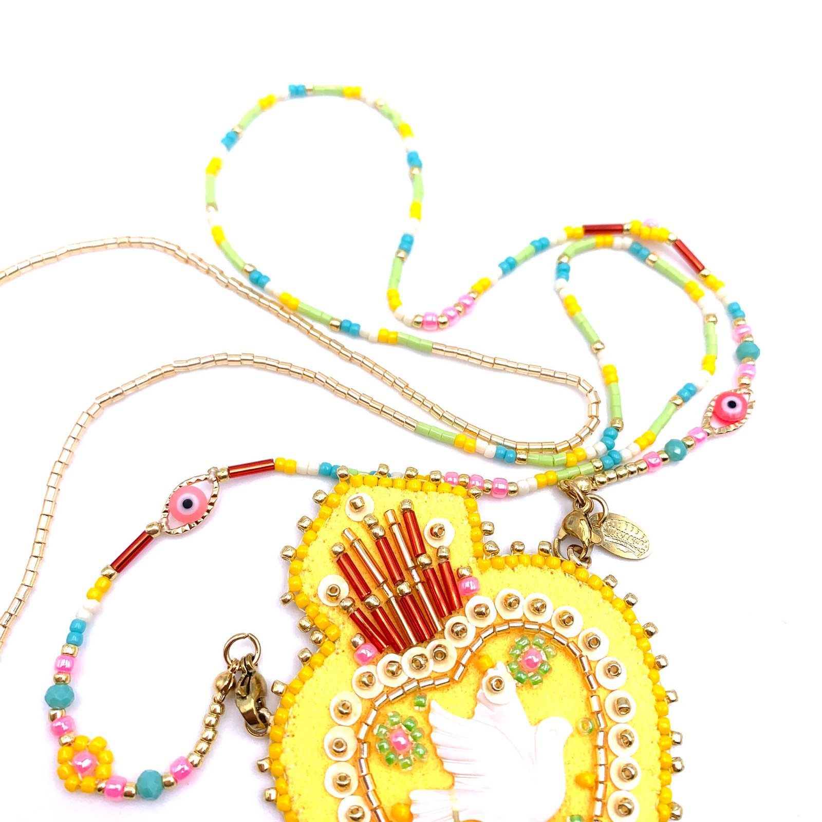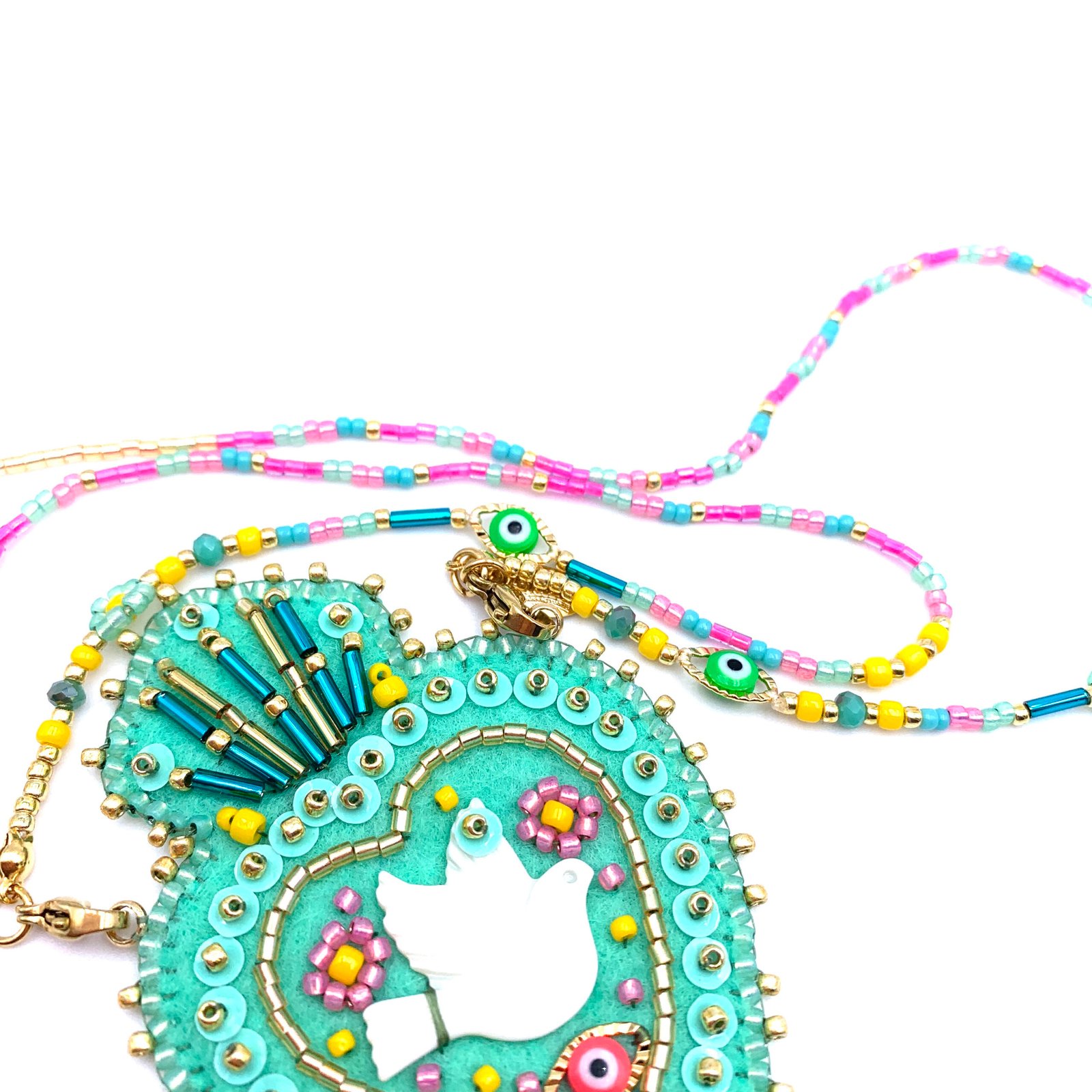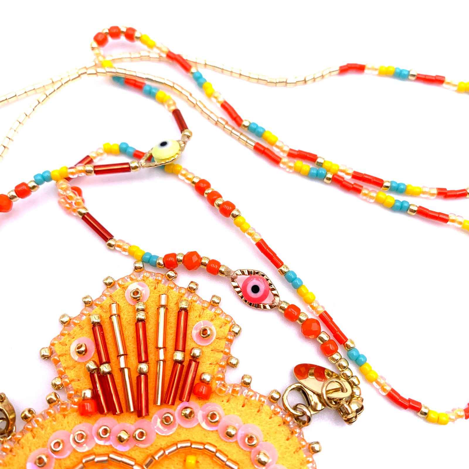Sautoir en perle de Miyuki et pendentif en feutre serti de perles et symboles