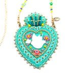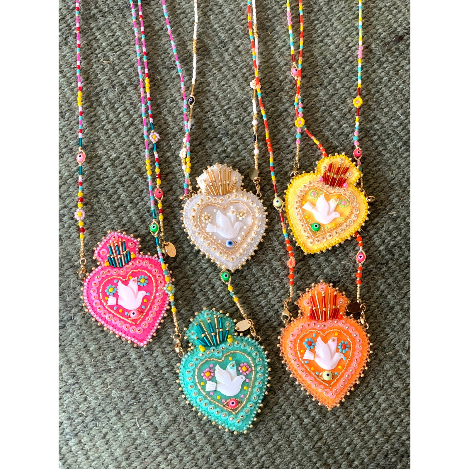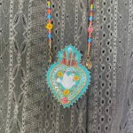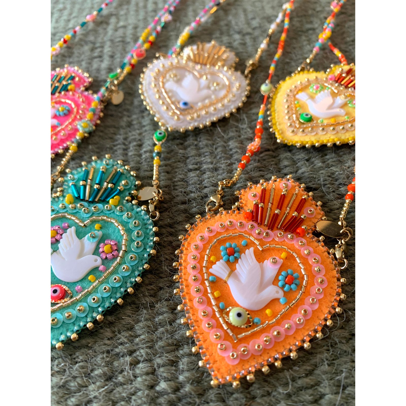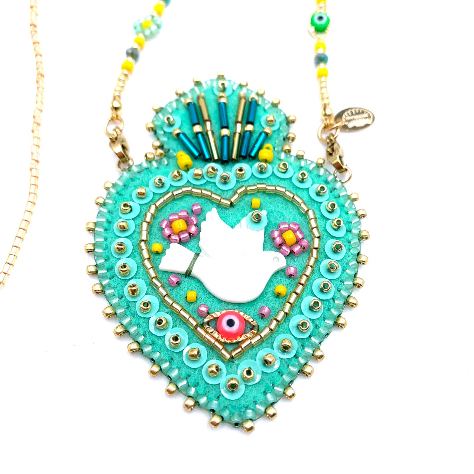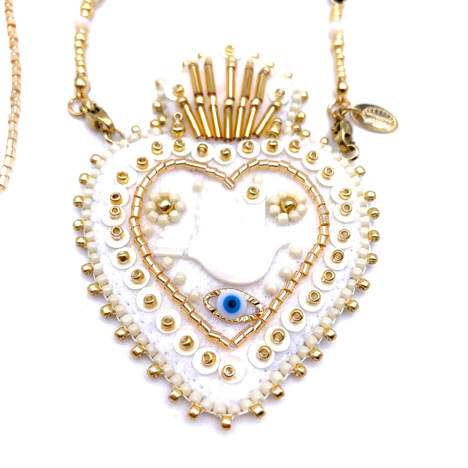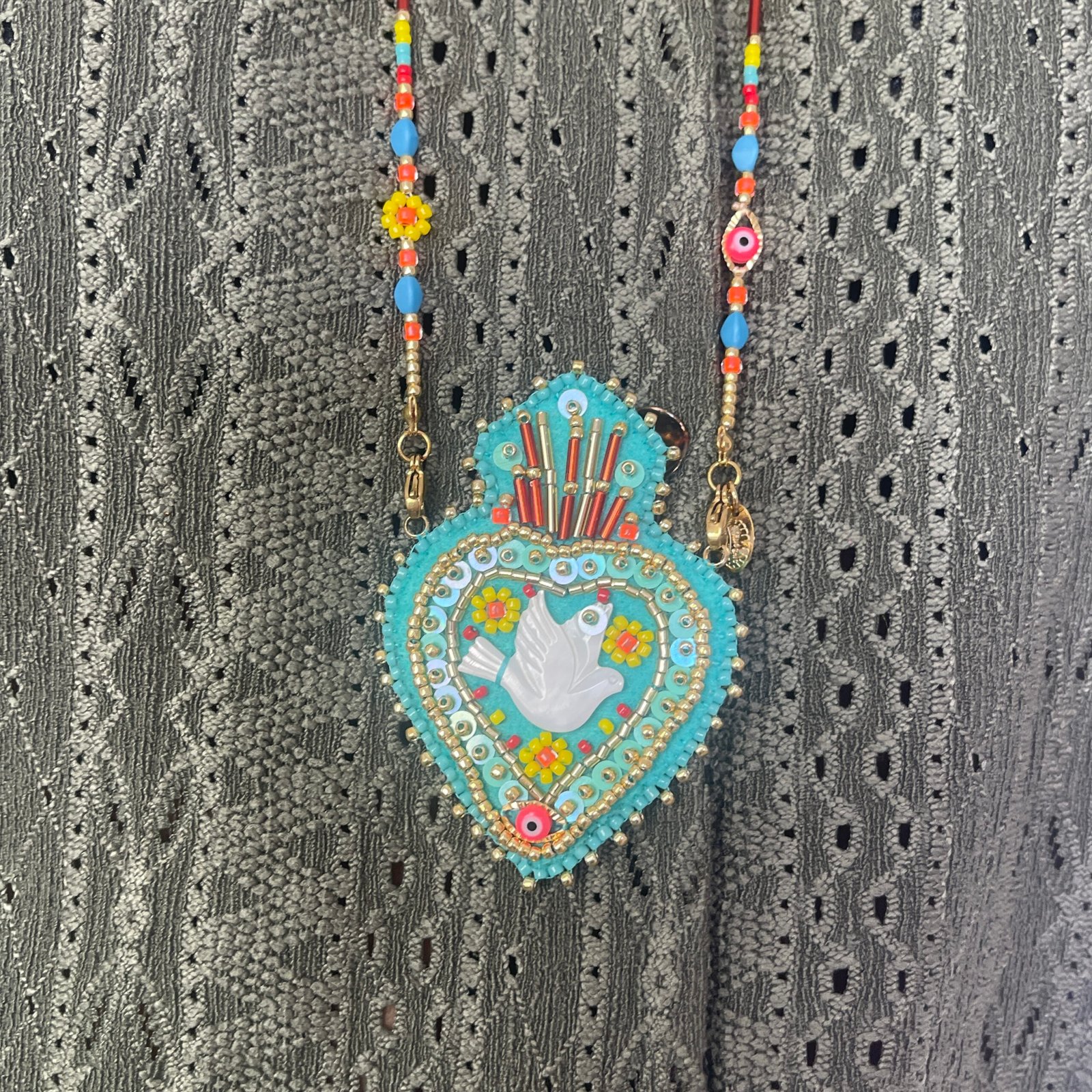 Sautoir en perle de Miyuki et pendentif en feutre serti de perles et symboles