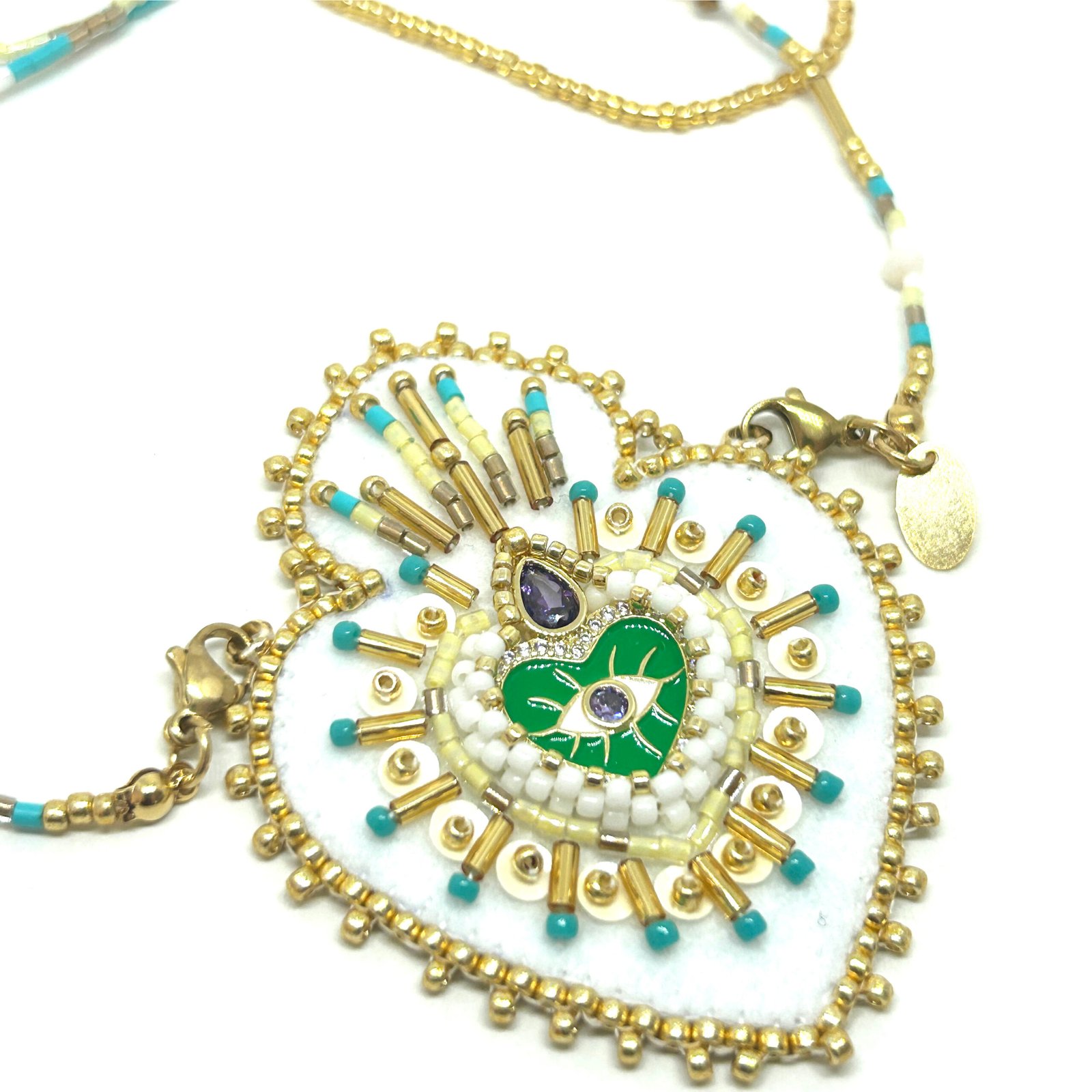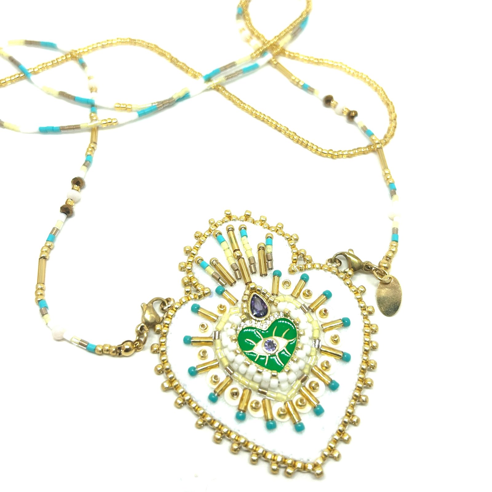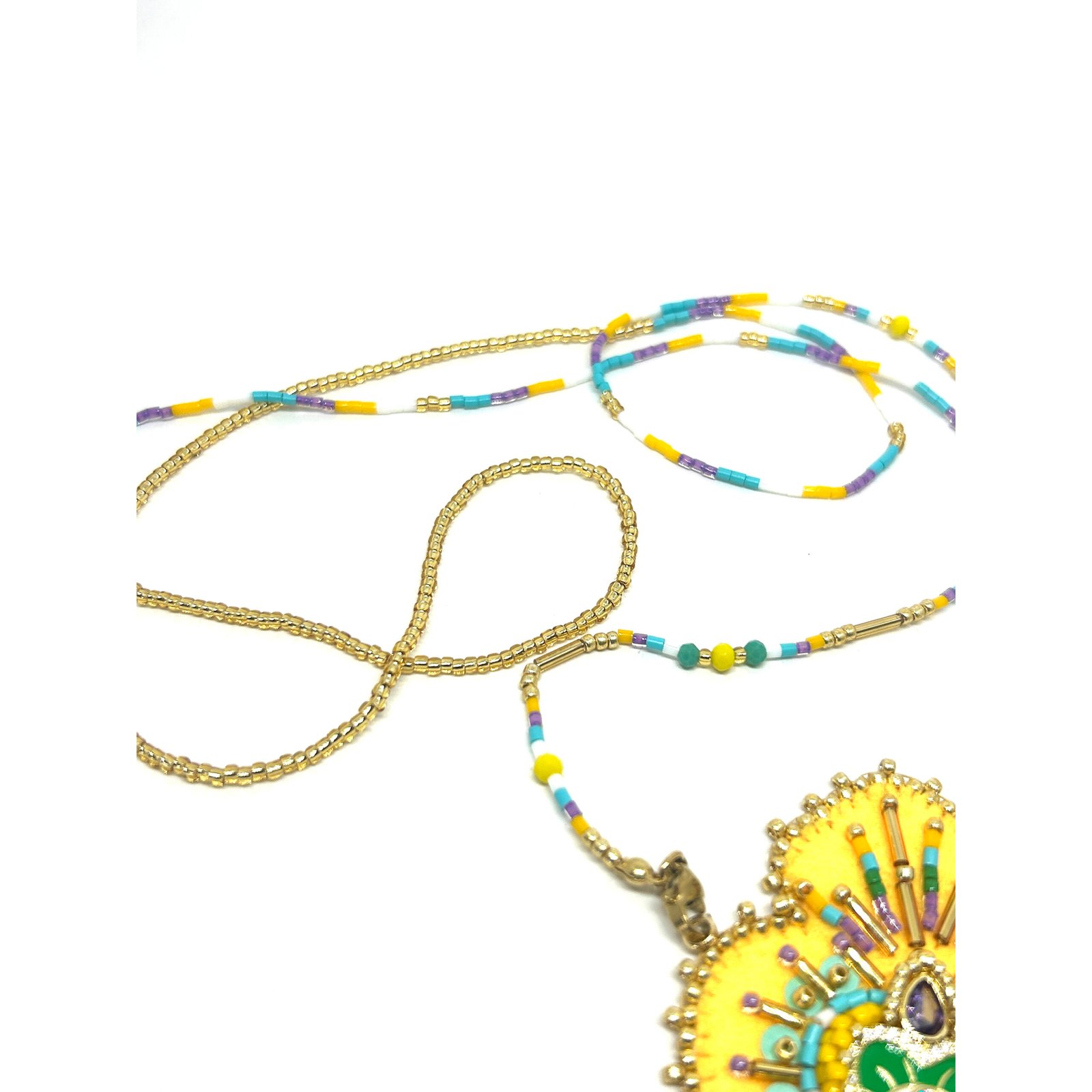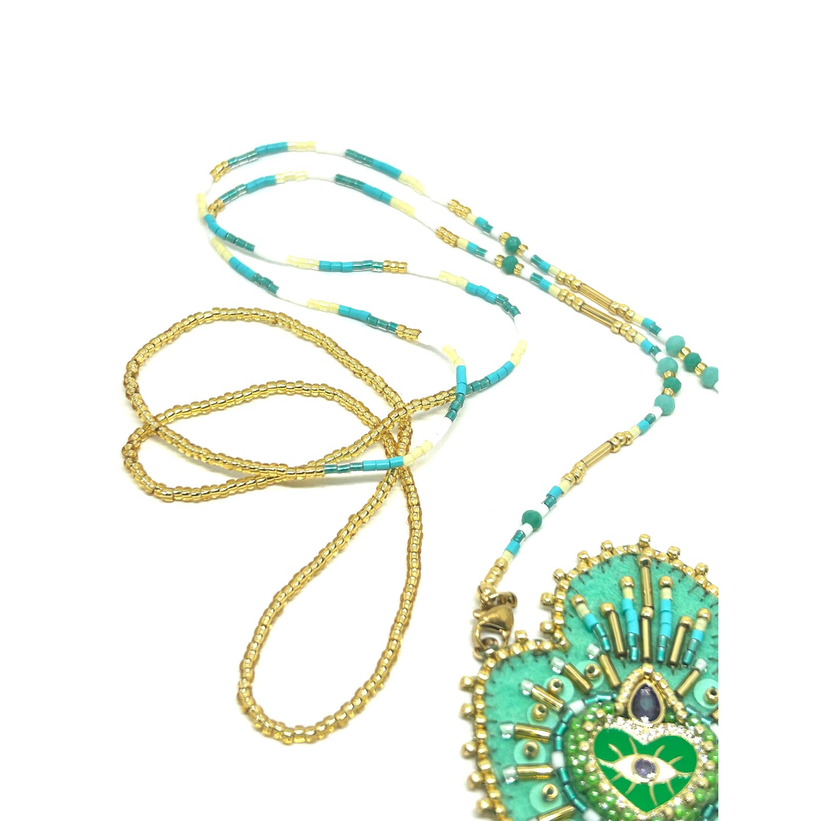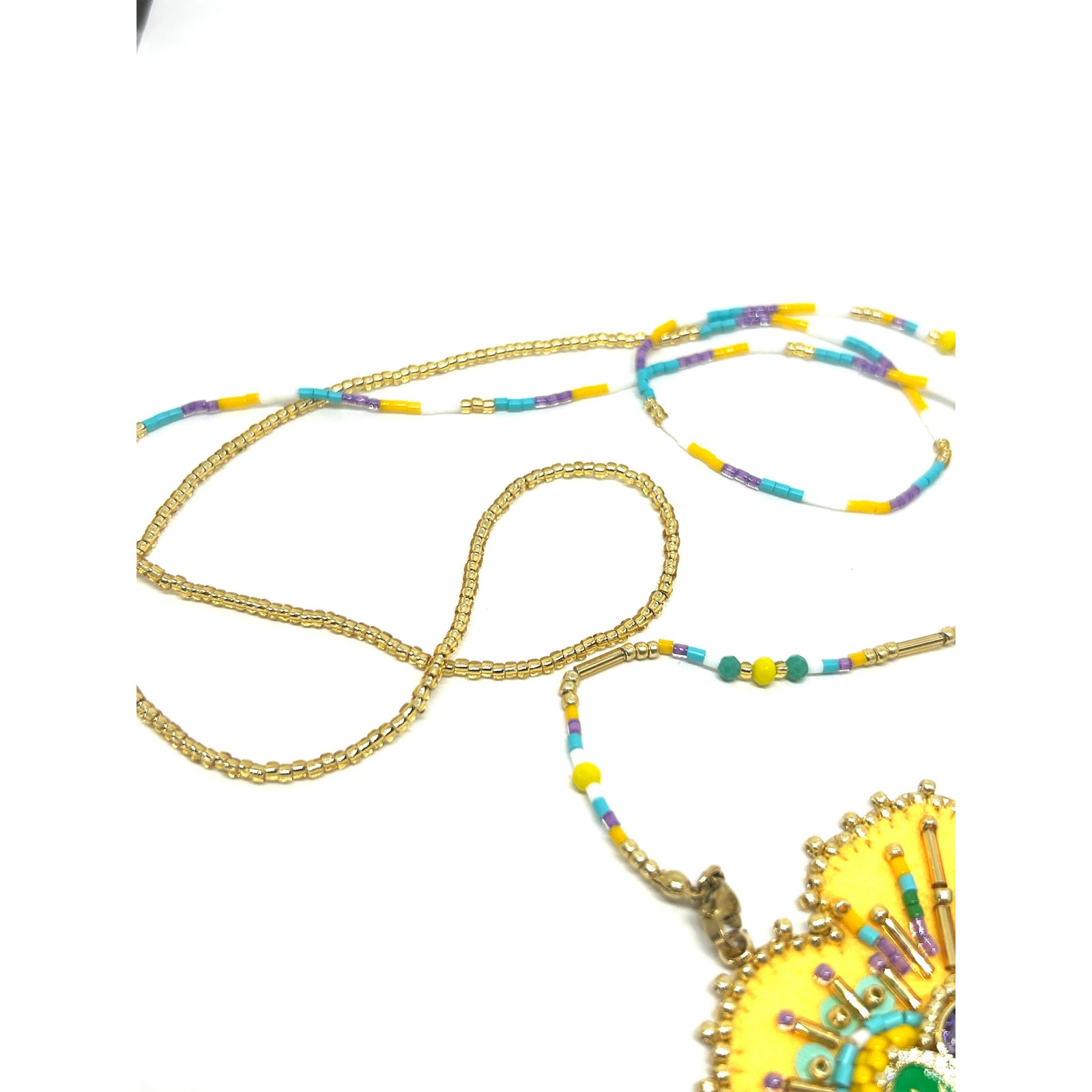 Sautoir en perle de Miyuki et pendentif en feutre serti de perles et symboles