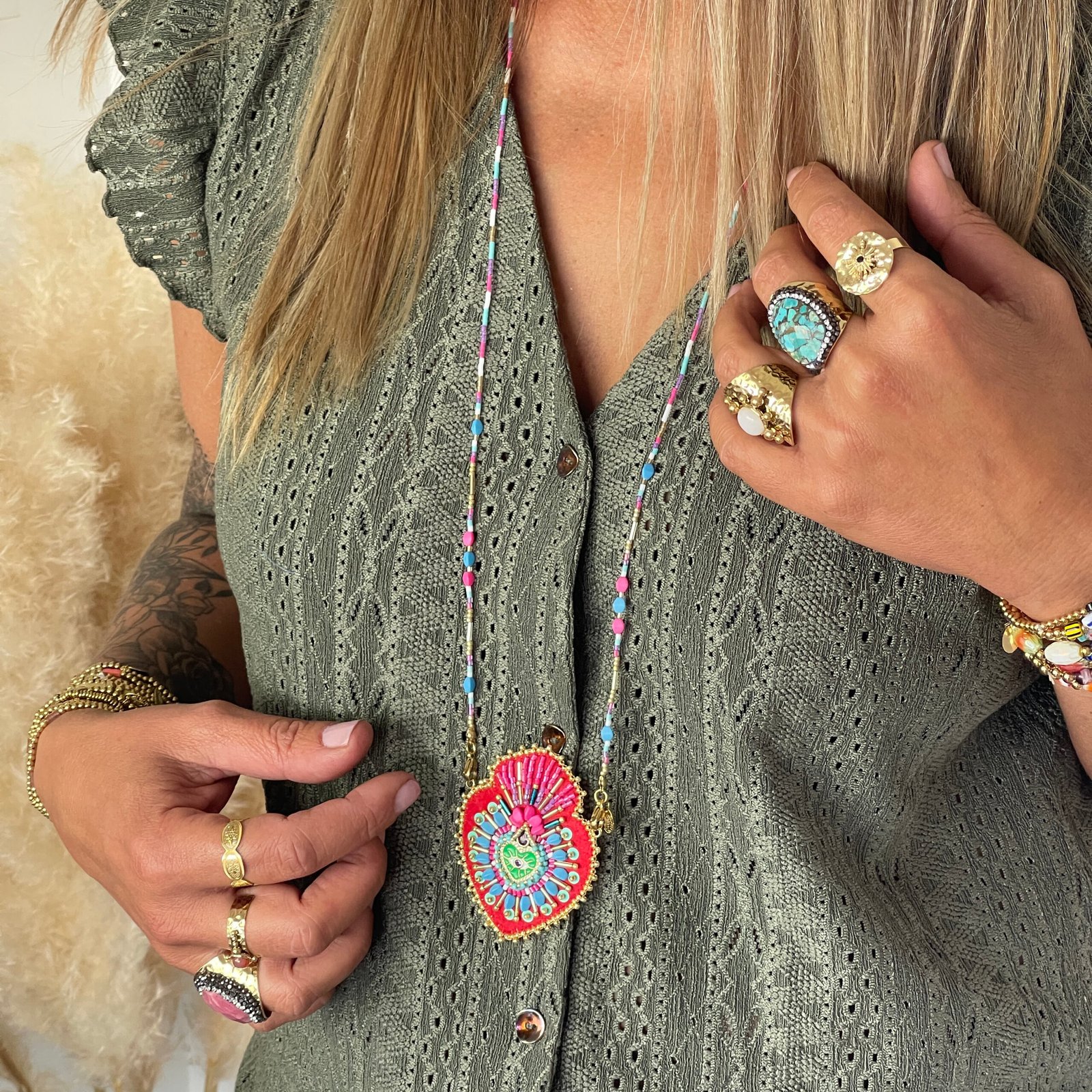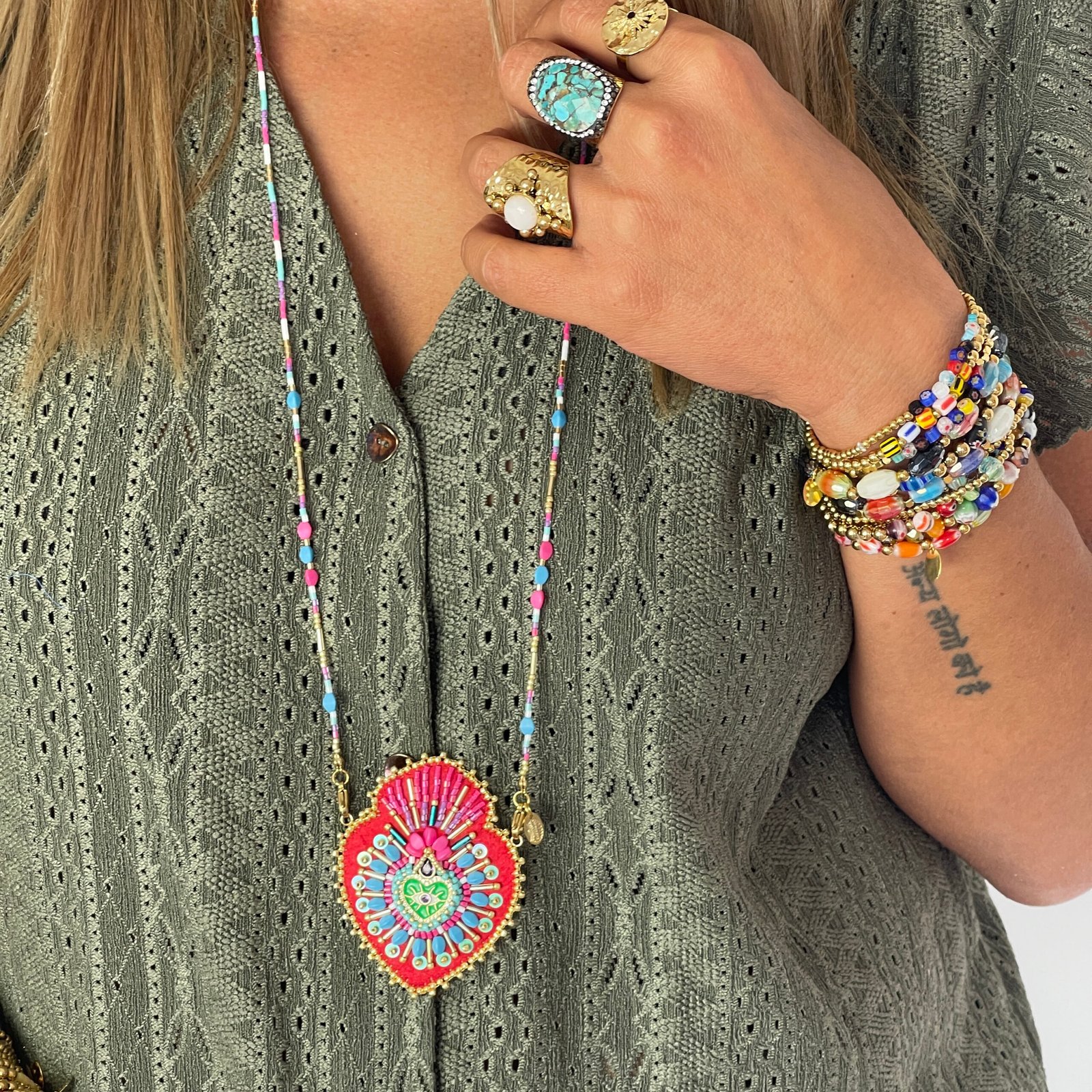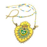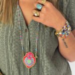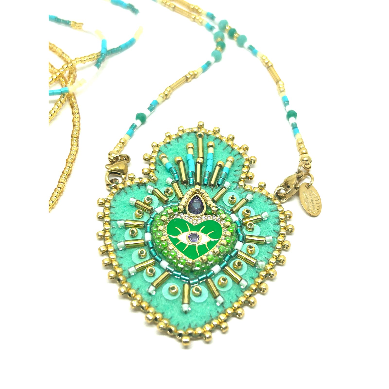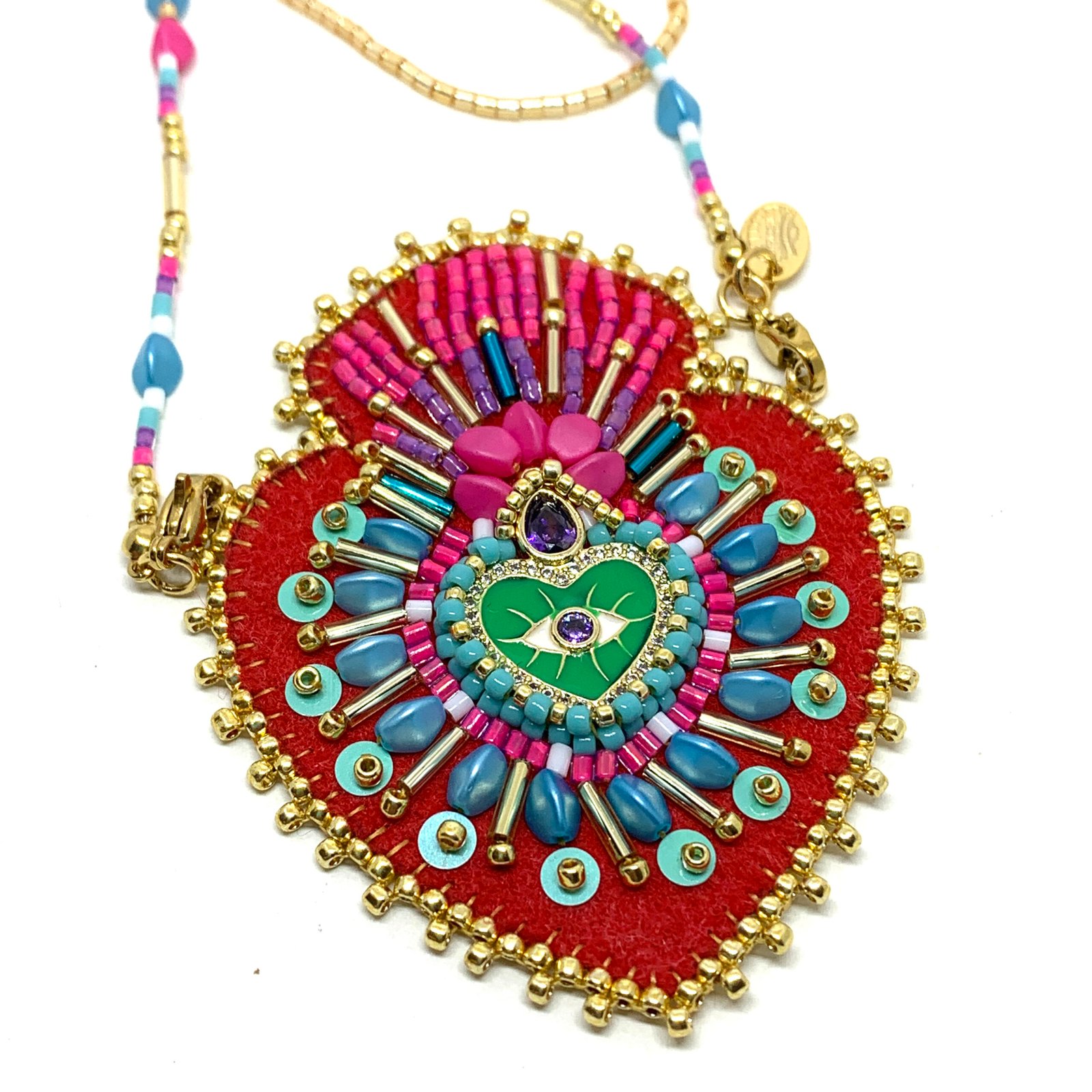Sautoir en perle de Miyuki et pendentif en feutre serti de perles et symboles